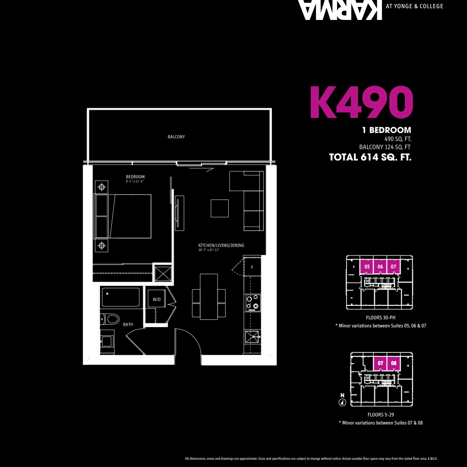Luxurious Karma Condos is located in the center of downtown Toronto. Incredible 1 bedroom condo layout with no wasted space. 490 sqft plus 124sqft balcony for 614sqft total. 9’ smooth ceilings, floor to ceiling windows, modern Cecconi Simone kitchen, quartz counters and much more. Hotel style living, right on the TTC subway line close to Ryerson and U of T. The city is literally at your doorstep. Take a 3D Tour using the attached link.