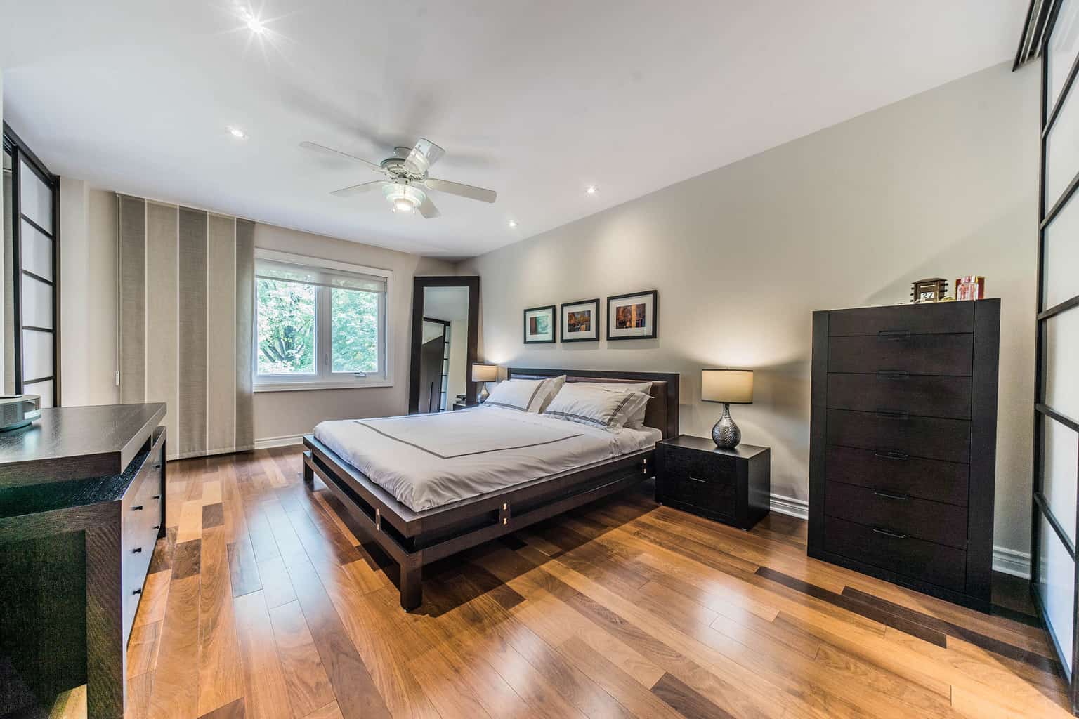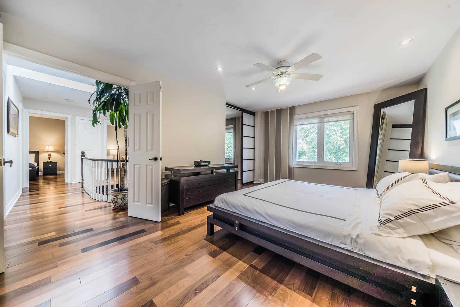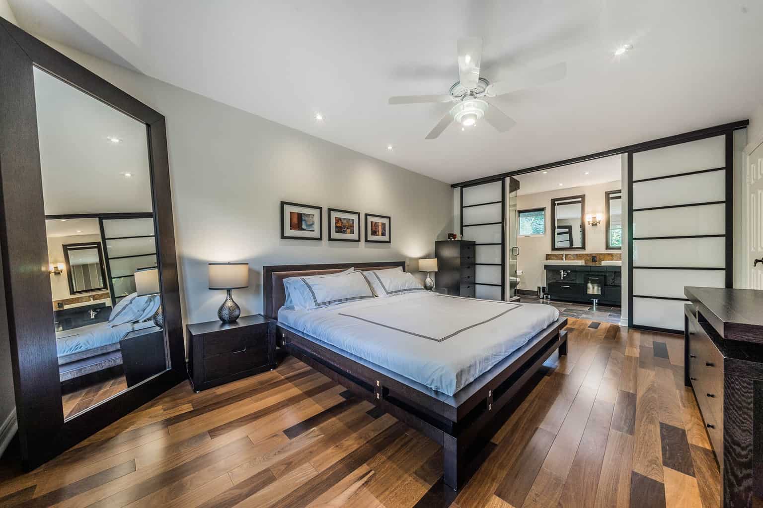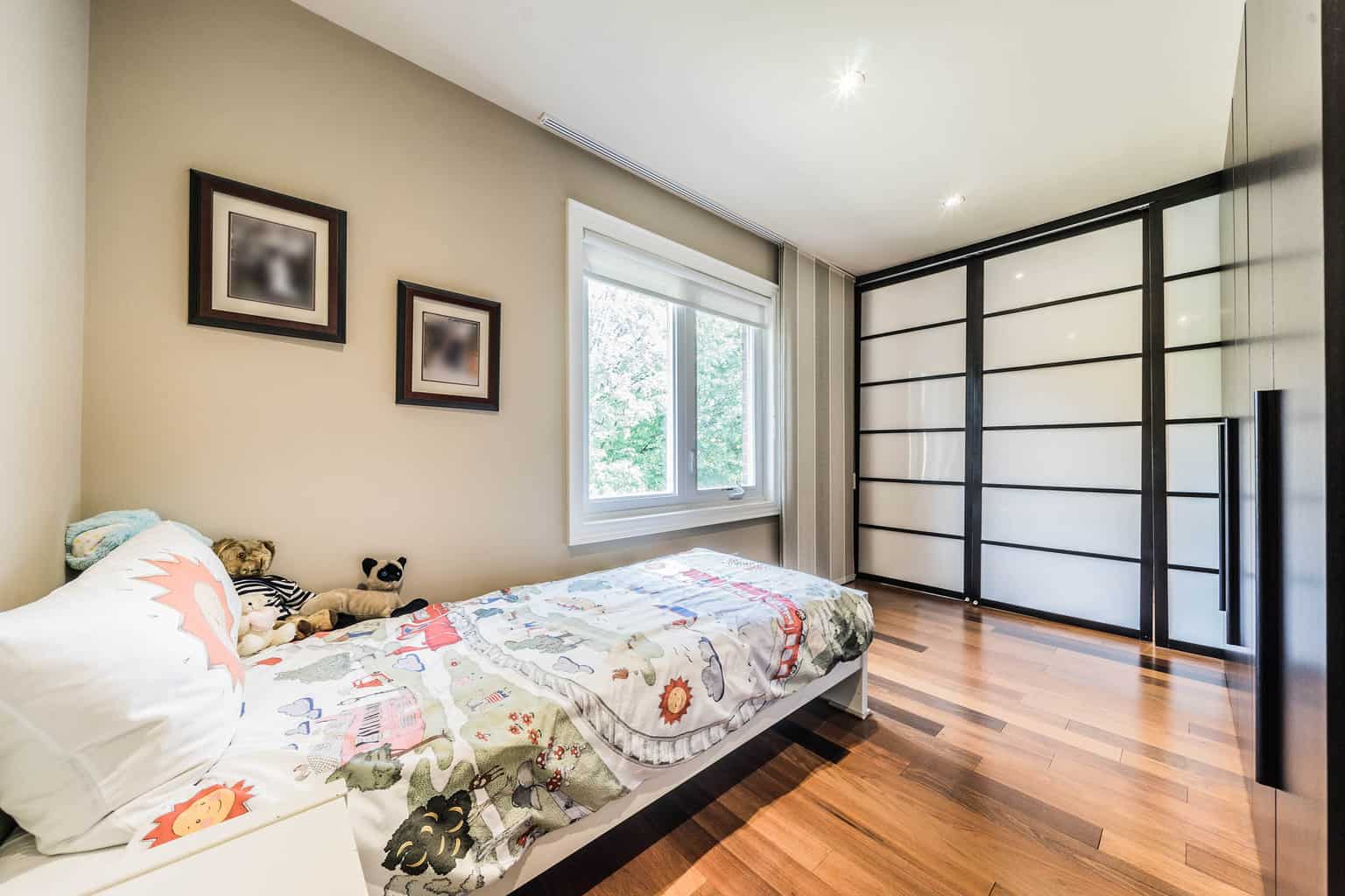 Sohji Doors installed in master bedroom for washroom and custom closet with Selene furniture custom wardrobe (Was previously the 4th bedroom. Can be easily converted back to a bedroom if needed).
