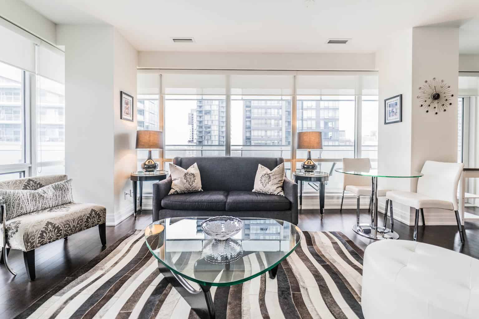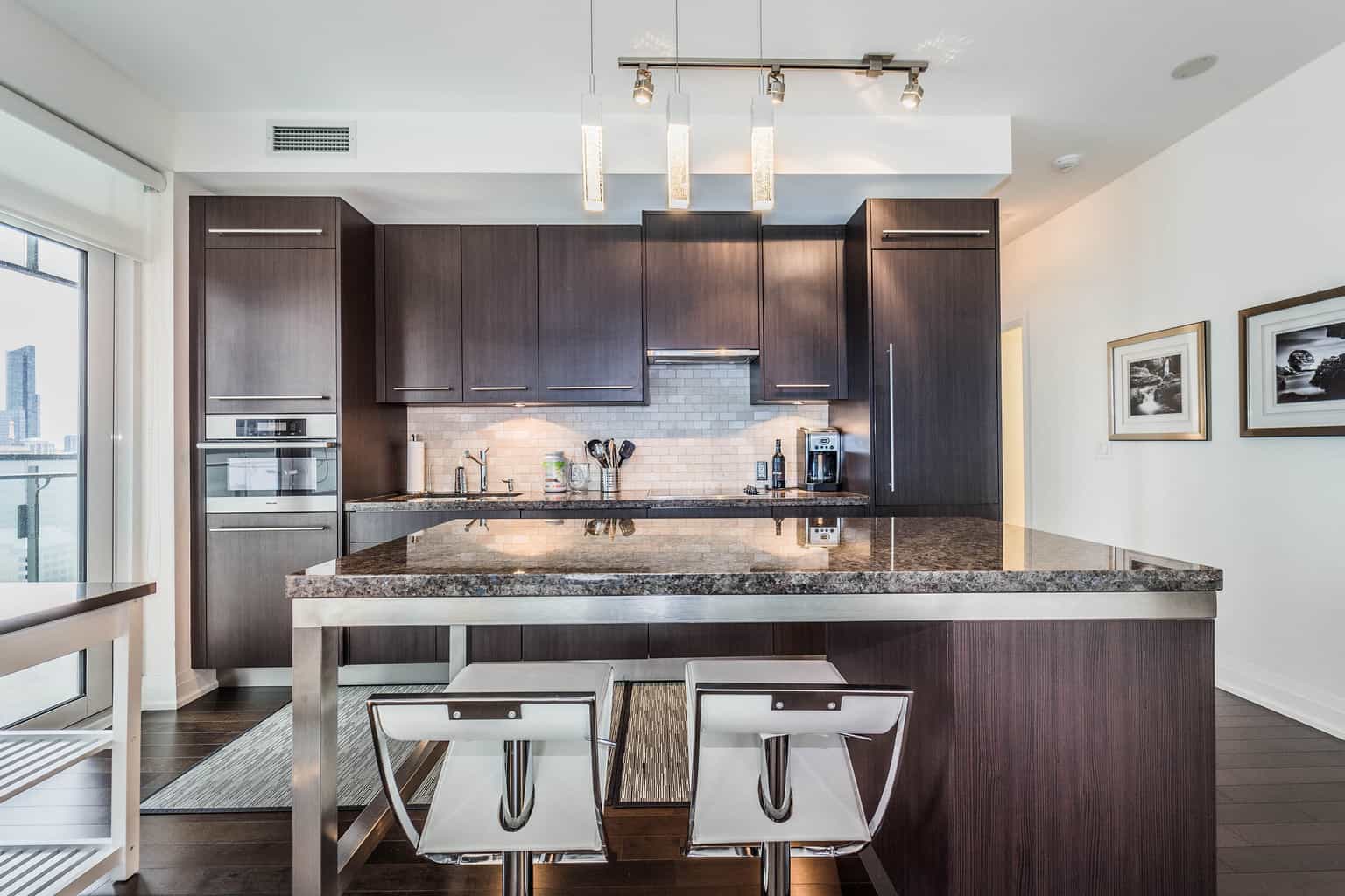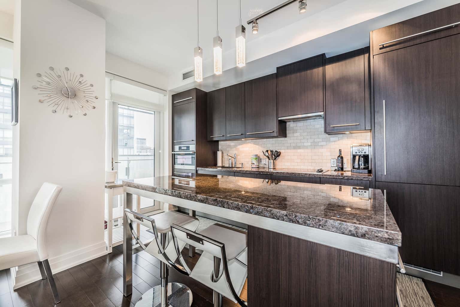 Tastefully designer furnished with everything! Hardwood Floors, Miele Appliances, Upgraded Kitchen Cabinets, Granite Counters, Marble Back Splash, Custom Hunter Douglas Blinds, Custom Closet Organizers. Includes 1 Parking & 1 Locker.