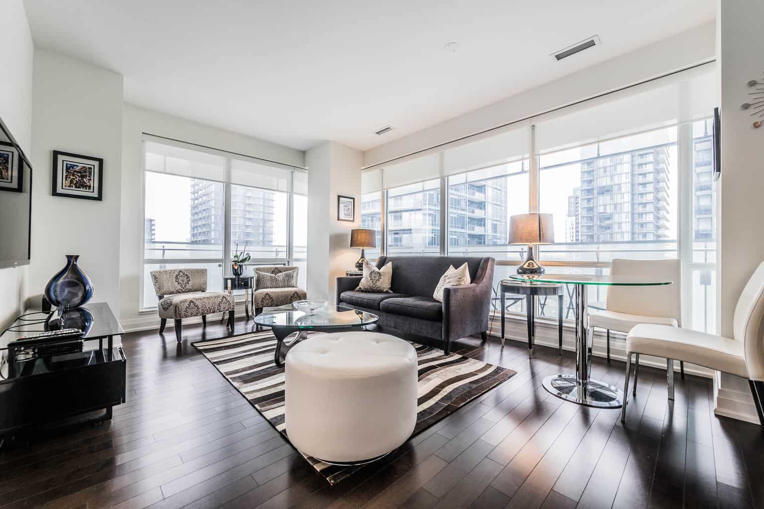 Luxurious living at the home to TIFF in the center of Toronto lies your future oasis. Corner unit, split layout & wrap around terrace perfect for an executive rental. Fully furnished with designer pieces from one of Toronto’s top interior designers & all you’ll need. Steps to the financial district, top restaurants, stadiums & more. Top tier building amenities include Concierge Service, Movie Theatre, Sports Bar, Gym, Yoga Studio, indoor pool & Rooftop Patio.